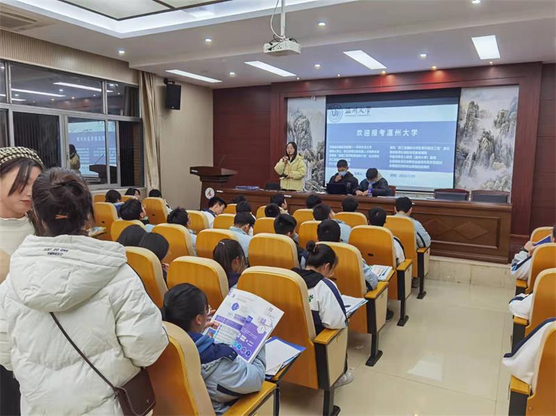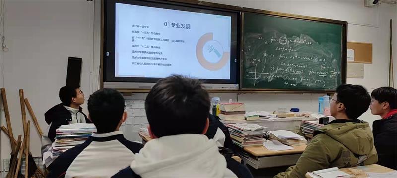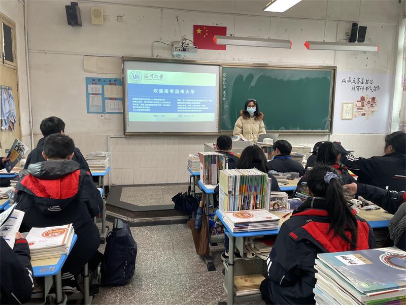 冰雪还未消融,寒风仍然瑟瑟。“啊对对对”队用他们炽热的心驱散了冬日的寒冷。他们提前做好分工,联系对接母校及相关部门,确定好时间和活动形式,并整合好各类宣讲物品,为这次宣讲做足了准备。回访当日,队员们与母校高三老师联系沟通好,由高三年级组长统一将宣传视频、宣传手册下发给各班班主任,并选择特定的时间观看,帮助各班同学们全面深入了解51吃瓜 。此外,他们还和学弟学妹们展开线下交流,介绍51吃瓜 办学特色、潜在优势,帮助解决关于三位一体、高考填报分数线等问题,展示了51吃瓜 的良好形象,燃起学弟学妹们对报考温大的浓厚兴趣。在这所浙江省一级普通高中特色示范学校里,队员们在活动中不仅重温了师生情谊,也找到了满满的幸福感和获得感。