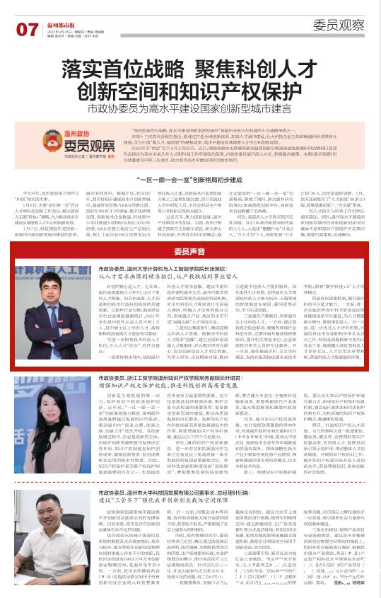 四是优化政策机制,提升温州科创平台留才能力。一方面,进一步加强世界青年科学家创业园等高能级创新平台建设,为人才搭建展示舞台,做到事业留人。另一方面,进一步优化人才评价机制,开展信息技术专业职称评审互认试点工作,特别是积极探索与省内以及长三角、粤港澳大湾区等地区人才评价互认、人才信用共享等机制,营造科创人才发展最优环境。