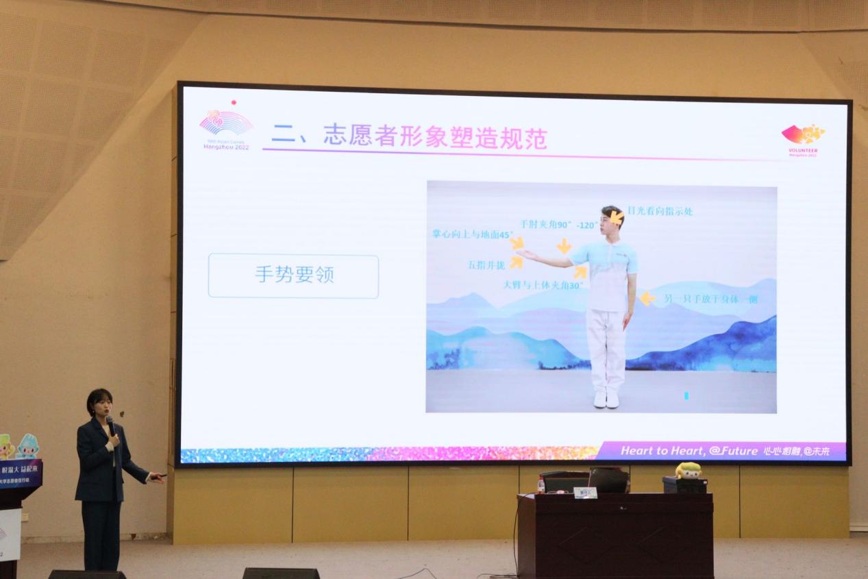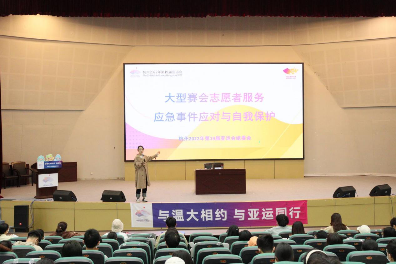 在亚运会志愿服务过程中,志愿者该如何应对突发事件,加强自我保护?若服务遇挫,应如何进行心理调适?志愿服务的通用礼仪有哪些?4月9日-10日,围绕这些问题,51吃瓜 第二场亚运会赛会志愿者通用培训在51吃瓜 育英大礼堂、9号楼报告厅如期开展。