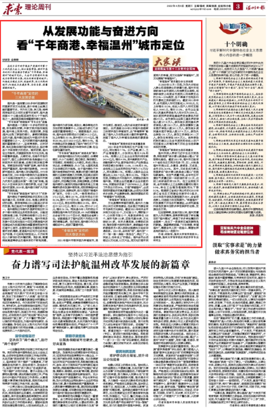 忆往昔峥嵘,改革开放以来,温州凭着敢为人先的精神,披荆斩棘创造了举世瞩目的“温州模式”,缔造了许多举世瞩目的全国第一,走出了一条具有区域发展特色的新路。展望锦绣前程,“千年商港、幸福温州”,需要全市人民一起奋斗、需要世界各地的温州人一起努力!