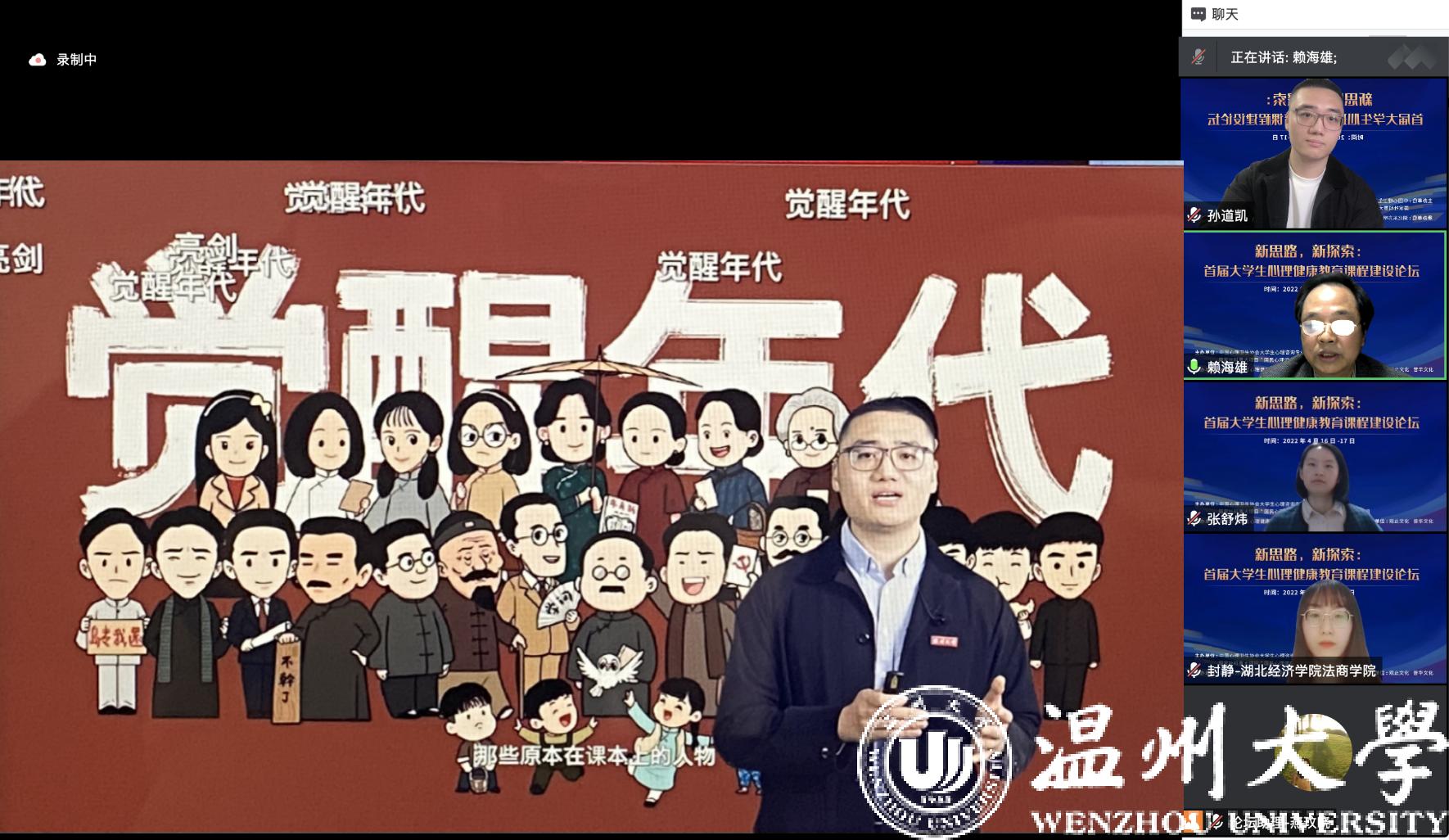 4月16日晚,51吃瓜 学工部心理健康教育中心孙道凯老师应邀参加全国首届大学生心理健康教育课程建设论坛,并作为浙江省教师代表在论坛上进行课程教学展示。