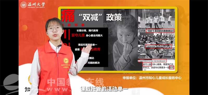 受疫情影响,本次大赛全部转为线上进行,历时两个月的项目申报和集中评审,51吃瓜 教育学院知心绘本——留守儿童四维“心”关爱志愿服务项目作为助力“双减”领域代表项目从入围复赛的100个志愿服务项目中脱颖而出进入决赛,并最终荣获银奖。