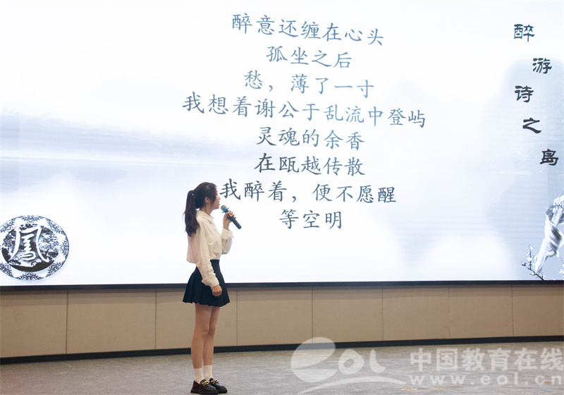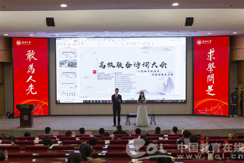 大会分“诗词原创诵读”和“诗词知识竞答”两个环节,经过前期线上海选和初赛,来自51吃瓜 和温州商学院的18位选手入围决赛。