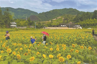 泰顺县百丈镇阳山村的百亩向日葵花开正艳,游客纷至沓来。百丈 摄