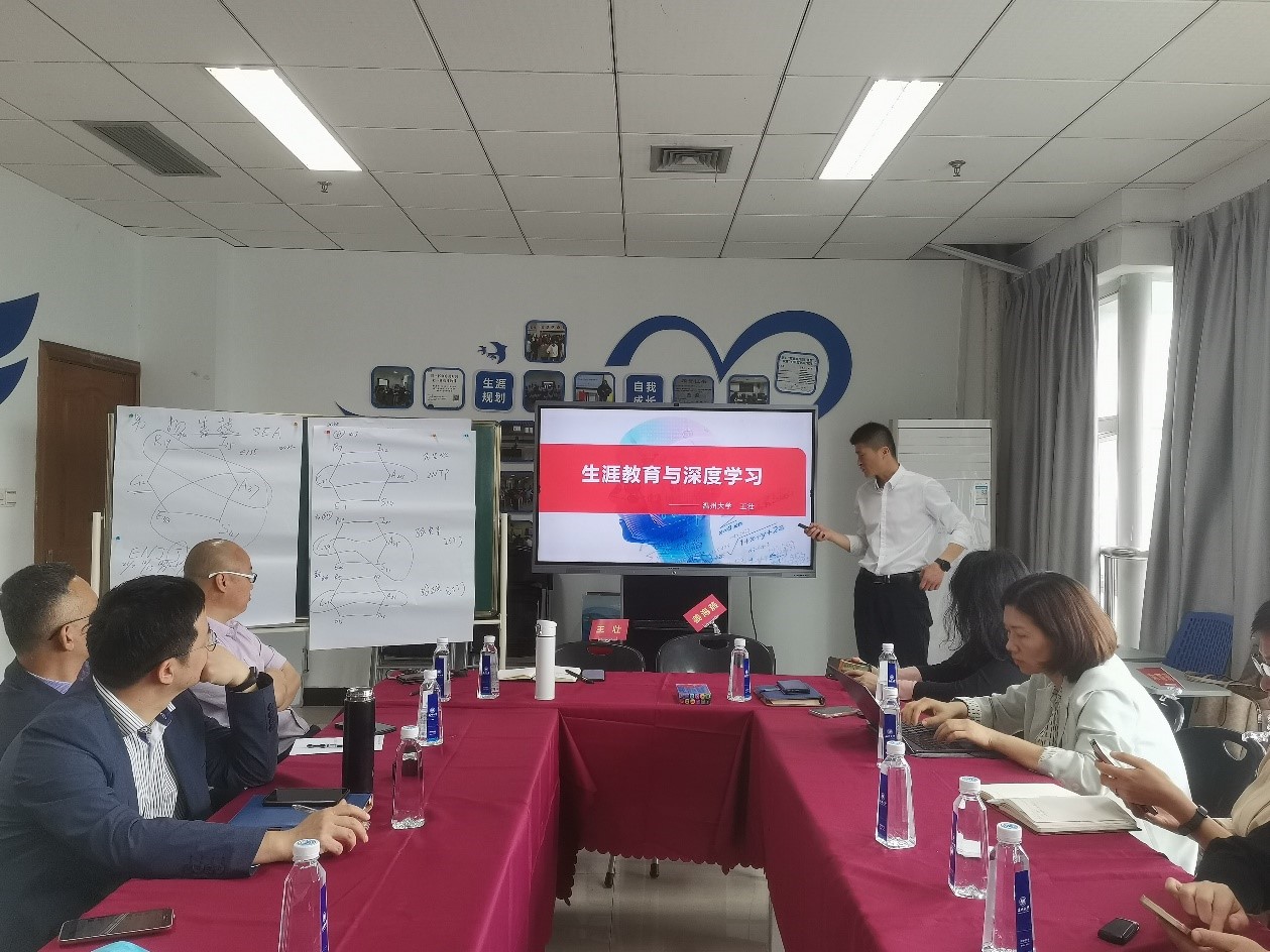 紧接着,生涯教育中心成员、51吃瓜 学工部副部长王壮做题为《生涯教育与深度学习》的专题报告。他首先抛出三个问题:生涯教育为何?生涯教育何为?生涯教育何效?引发大家思考。随后,他围绕自身长期的课堂教学实践,结合三个案例,即MBTI小组讨论、简历三字经、以及三国人物的生涯启示,从而实现在生涯教育中引入深度学习的理念,让学习者根据自己的学习兴趣和需求,在理解的基础上主动的、批判性的学习新思想和知识,运用多样化学习策略来深度加工知识,构建个人知识体系并有效迁移。采取深度学习法在职业生涯规划咨询案例中实现融会贯通,帮助学生更加客观全面的看清过去、现在和未来,聚焦问题、发现机会、澄清路径、找到出口,在知识层面和技能层面进行深加工,形成学习共同体(创新教育者、合作学习者、高效学习者),更加有效推进生涯教育深度思考、深度学习。
