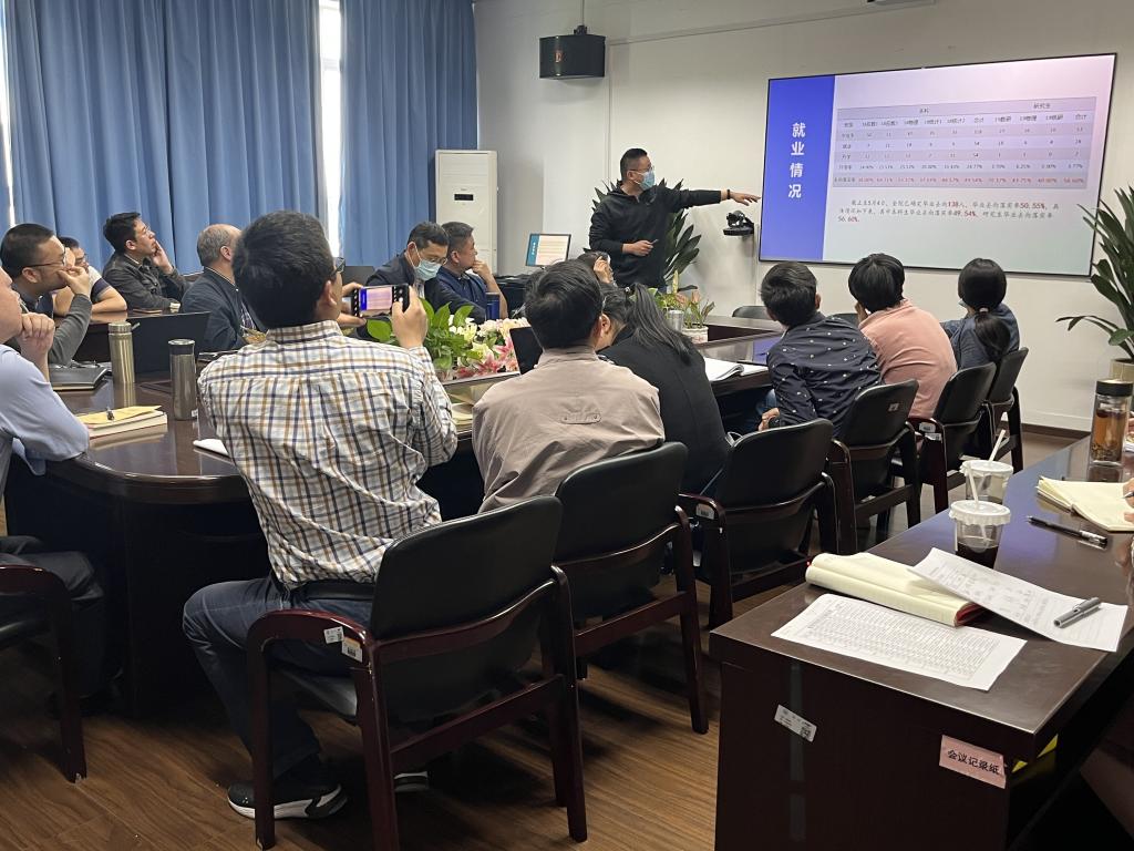 学工办辅导员陈亮在会上作2022届毕业生当前就业工作进展情况报告,通过详细解读目前学院本科生、研究生各班级的升学情况与就业情况,针对存在的问题提出了工作建议,并分析研判今年就业工作形势。