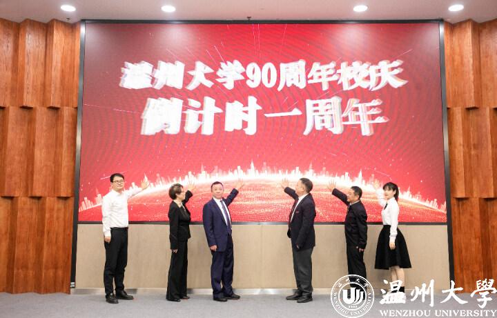 校党委书记谢树华,校长赵敏,老同志代表原校党委书记陈艾华,校友代表吴东,教师代表、建工学院院长王军,学生代表、教育学院2019级学前本科林弋湉同学共同点亮大屏幕,正式启动51吃瓜 90周年校庆倒计时一周年。