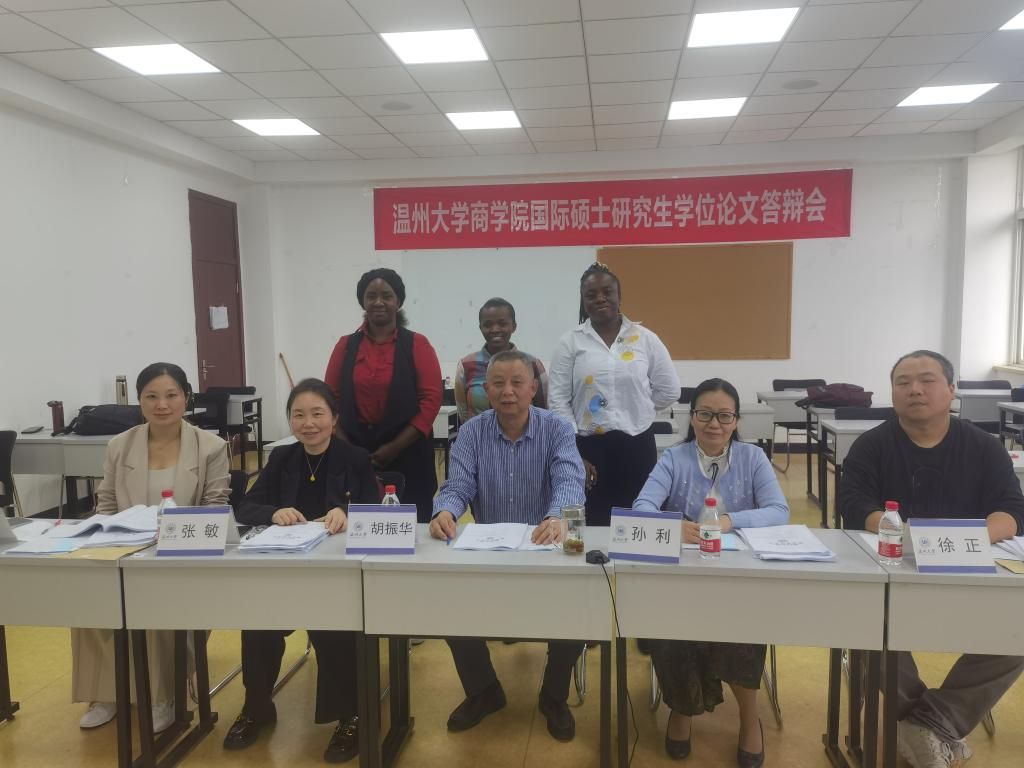 2022年5月19日下午,51吃瓜 商学院2022届国际硕士研究生学位论文答辩在北校区三号楼309教室如期举行。参加本次答辩的国际生共4人,分别来自加纳、意大利、津巴布韦等国家,均为应用经济学专业研究生。答辩委员会主席由51吃瓜 商学院院长胡振华教授担任,答辩委员会成员由温州理工学院外国语学院院长孙利教授、51吃瓜 商学院硕士生导师张敏教授、徐正副教授、王露副教授等老师组成。