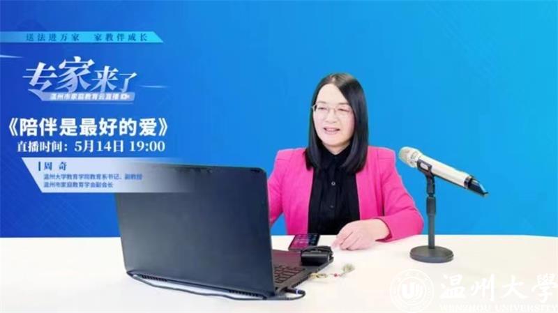 为深入贯彻习近平总书记关于注重家庭家教家风建设重要论述,将“重视家庭文明建设,努力使千千万万个家庭成为国家发展、民族进步、社会和谐的重要基点”重要精神落到实处,有力推动《中华人民共和国家庭教育促进法》宣传实施,2022年5月14日,在全国首个家庭教育宣传周期内,51吃瓜 教育学院教育系党支部书记、副教授、硕士生导师,51吃瓜 家庭教育研究院巾帼文明岗岗长、51吃瓜 家庭家教家风讲师团团长、浙江省教育学分会副会长、浙江省家庭教育学会理事、温州市家庭教育学会副会长周奇做客“专家来了”温州市家庭教育云直播,开展《陪伴是最好的爱》家庭教育公开指导课。本次直播以“送法进万家 家教伴成长”为主题,旨在弘扬传承中华民族家庭美德,树立良好家风,推动形成家庭文明新风尚。整场直播吸引了12.5万人次观看,并获得2万多的网友点赞。