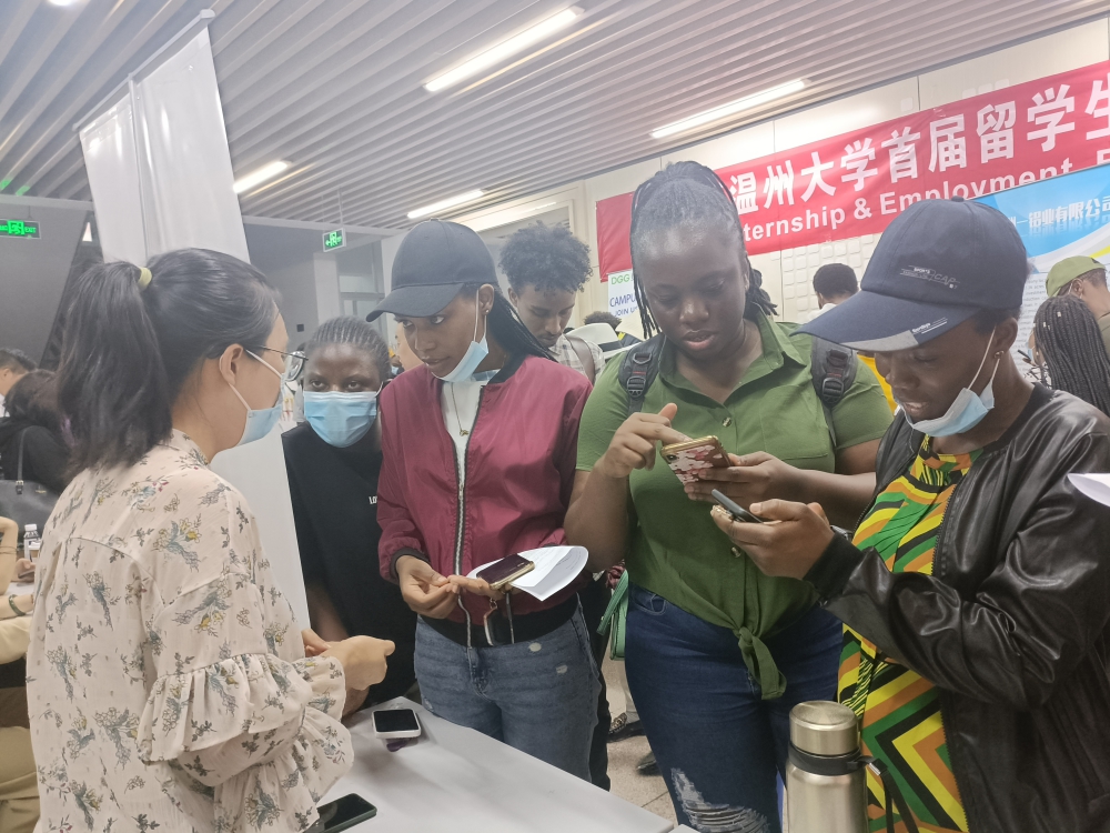 会后,即将毕业或有实习需求的国际学生们来到展台前,跟自己有意向的招聘单位和意向岗位深入了解,并和招聘工作人员热情交流在51吃瓜 的学习体验。“我在家乡有从事贸易工作的经验,来到中国求学4年,学到了很多东西,也得到了许多鼓励,特别是厉害的温州人,做生意非常专业,希望能有机会留在中国工作。”来自也门的国际学生晨晨是51吃瓜 国际贸易专业大四学生,他表示感谢学校提供的这次专场招聘会,让国际学生在校园内就可以和公司见面,寻找合适自己的就业机会。