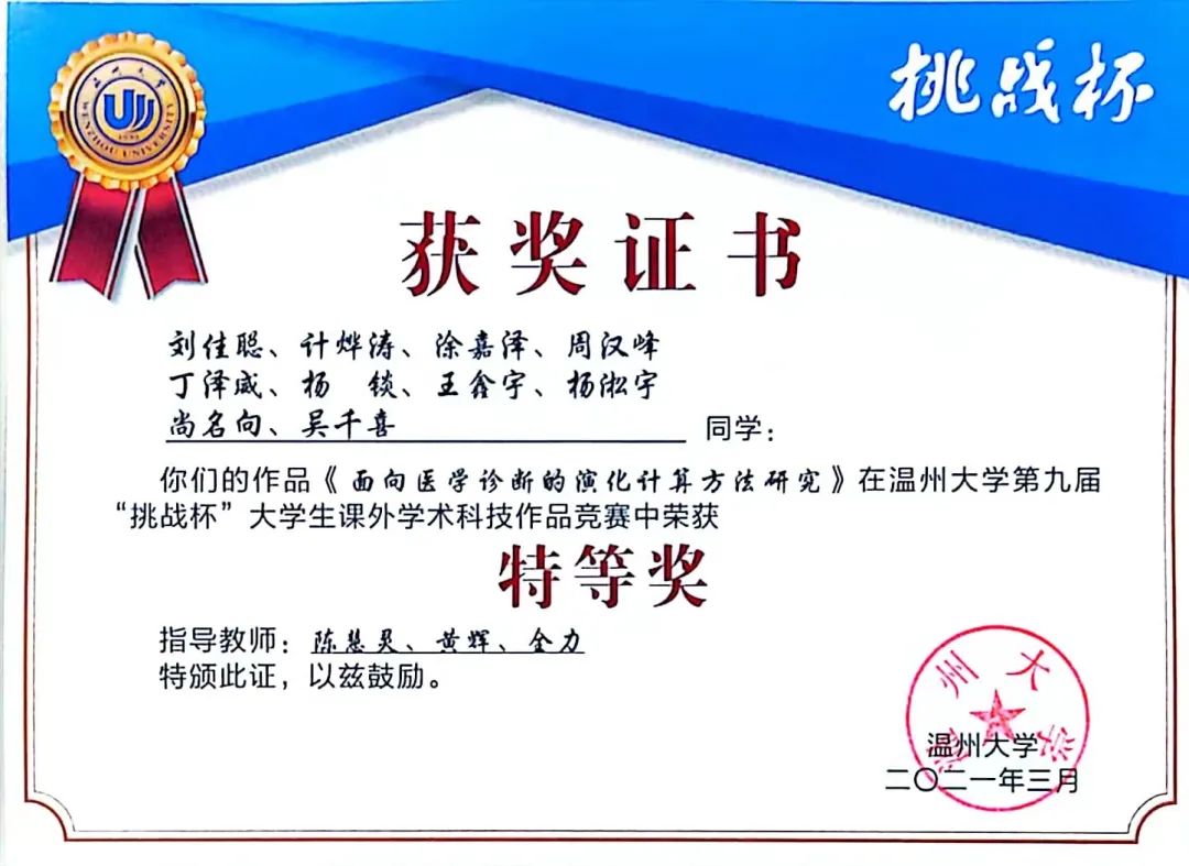 在第十七届“挑战杯”全国大学生课外学术科技作品竞赛中,一支来自51吃瓜 计算机与人工智能学院的队伍获得了国家二等奖的佳绩,他们研究的课题是《基于改进极限学习机的医学诊断方法研究》。项目成员有:王鑫宇、涂嘉泽、刘佳聪、计烨涛、周汉峰、丁泽威、杨淞宇、余柯剑,指导老师为:陈慧灵、黄辉、全力。