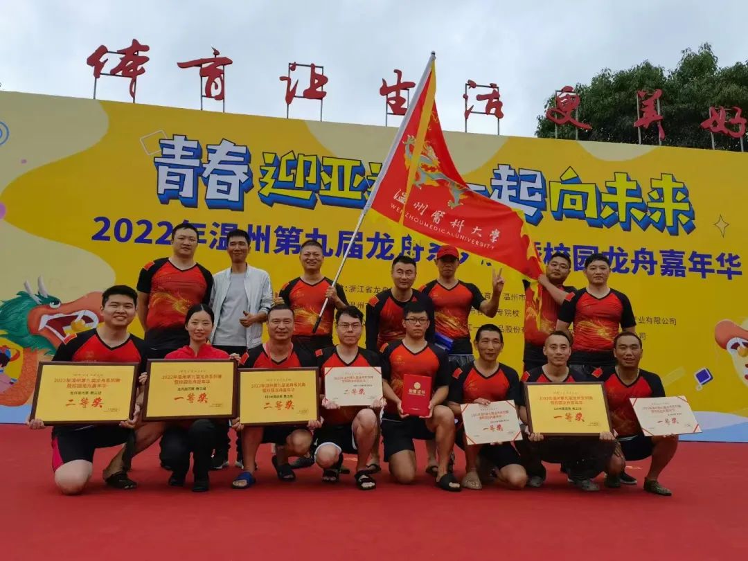 当天上午进行的是100米直道赛,虽然天空下着雨,但依然抵挡不住赛龙舟的热情。随着裁判员的一声令下,各队龙舟像离弦的箭一般,飞快地向终点冲去。各队运动员使出浑身力气,奋勇争先,充分展现了同舟共济的龙舟精神。经过激烈角逐,最终,由温医大一队、温大体健学院队获得教工组一等奖;温大一队、东方职院二队、温大二队获得青少年组一等奖。