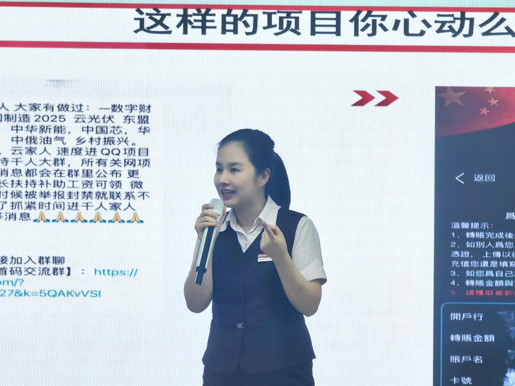 主讲人黄彬彬老师首先通过对骚扰电话和垃圾短信等典型电信诈骗案例进行详细分析,让宣讲团成员们生动地感受到电信网络诈骗的无孔不入和不良影响。在此基础上,黄老师还向金融公益宣讲团成员们详细介绍了储蓄卡、信用卡等银行卡的区别和用途。