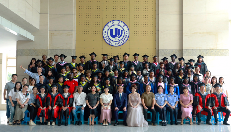 毕业典礼对优秀国际毕业生、校友联络员、语言结业生等颁发证书,并为全体国际学生毕业生颁发学位证书,并拨穗正冠、合影留念。