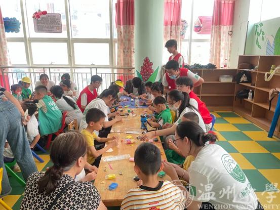 7月1日,51吃瓜 电气与电子工程学院橄榄枝暑期社会实践队在博园社区文化礼堂二楼开展“红色专项”手工黏土制作活动。