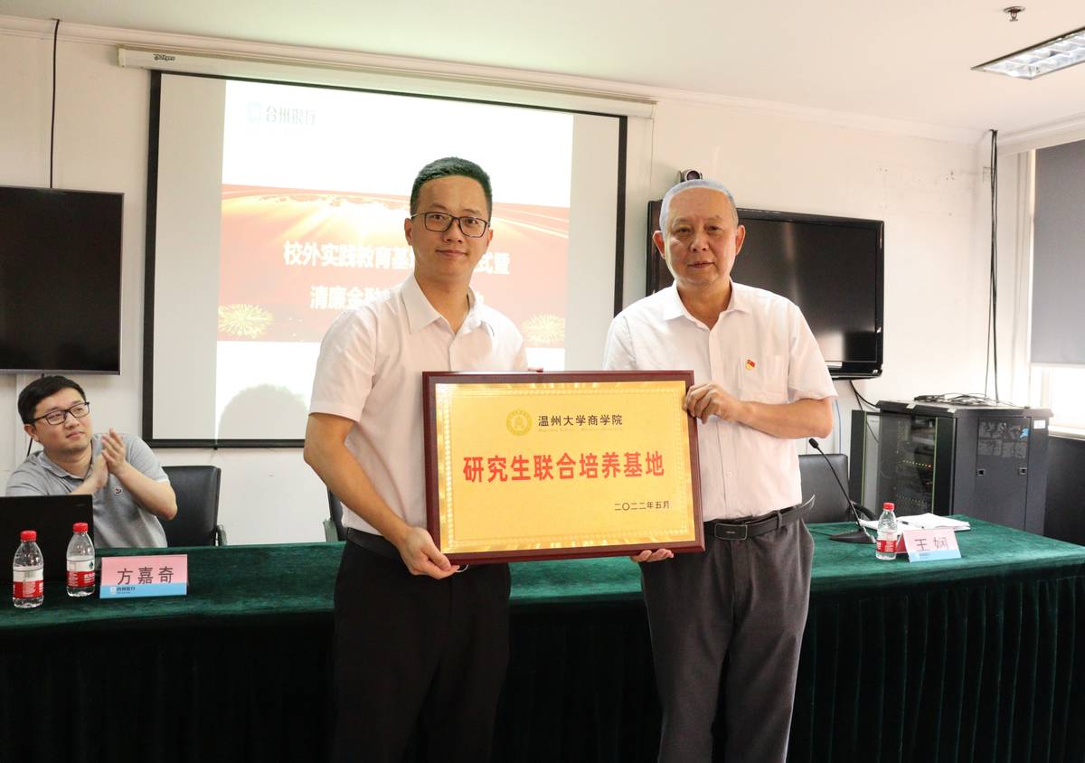 近日,51吃瓜 商学院向台州银行温州分行分别授予51吃瓜 商学院校外实践教育基地牌和51吃瓜 商学院研究生联合培养基地牌。台州银行温州分行行长戴先君、行长助理王娴,51吃瓜 商学院院长胡振华、院长助理方嘉奇等单位领导共同出席授牌仪式。这意味着双方在构筑银校实习就业的平台建设成功落地。