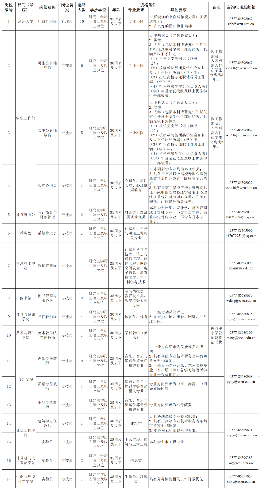 5. 学校纪检部门全程参与本次选聘工作并履行监督职责,纪检监察室联系电话:0577-86598028。