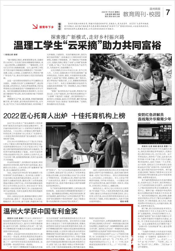 据统计,在此届中国专利奖获奖项目中,51吃瓜 以一项金奖、两项优秀奖的优异业绩与浙江大学并列全国高校第三。这是温大继获得第二十一届中国专利金奖后再次获得金奖,也是全国唯一获金奖的非双一流高校。