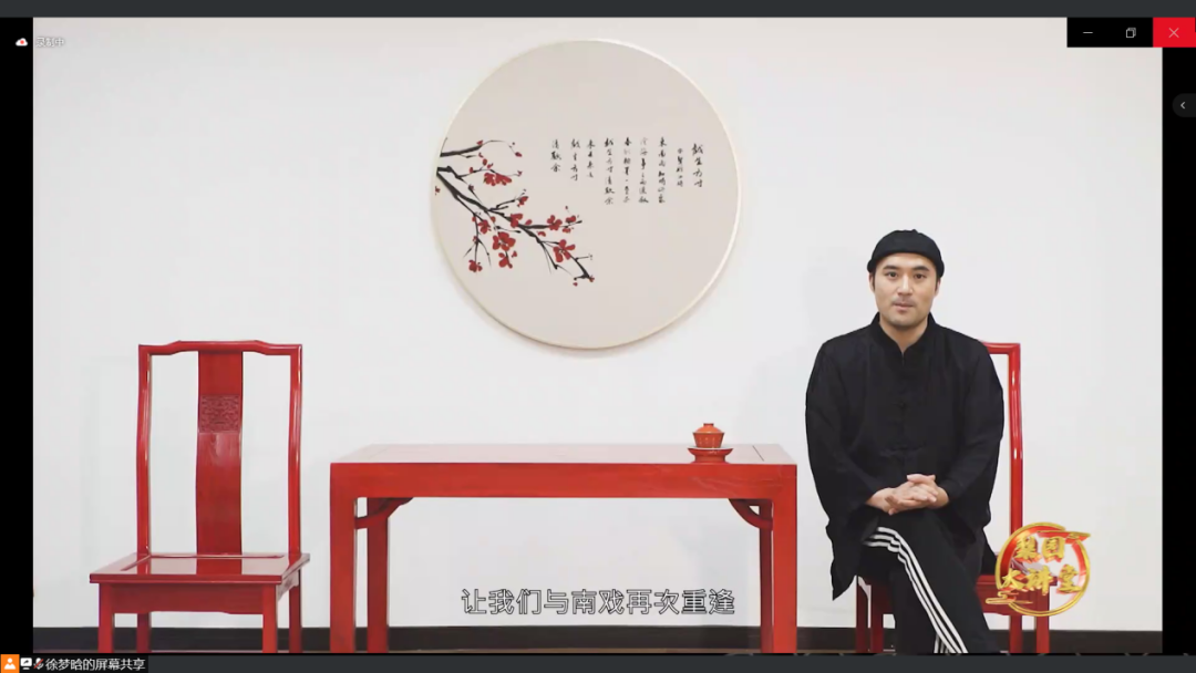 吴鑫老师为大家介绍了被后人称为四大南戏的著名作品《荆钗记》、《白兔记》、《拜月亭记》、《杀狗记》,将戏曲表演中的“四大”行当生、旦、净、丑,戏曲表演的“四功”唱、念、做、打等艺术手段做了详细讲解,还邀请学员进行线上跟唱,同学们参与热情高涨,零距离感受瓯剧的无穷魅力。