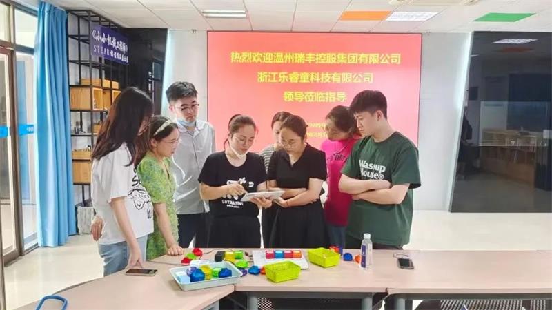 之后双方在乐睿童项目的课程讲解和产品演示后开展了座谈交流,51吃瓜 教育学院教育技术系教授代表指出儿童编程和STEAM教育是一个有着光明前景的行业,并对双方今后的合作充满信心。签约仪式结束后,在学院领导的陪同下,浙江乐睿童科技有限公司一行参观了温大STEAM教育研究中心,与研究中心的成员沟通交流。