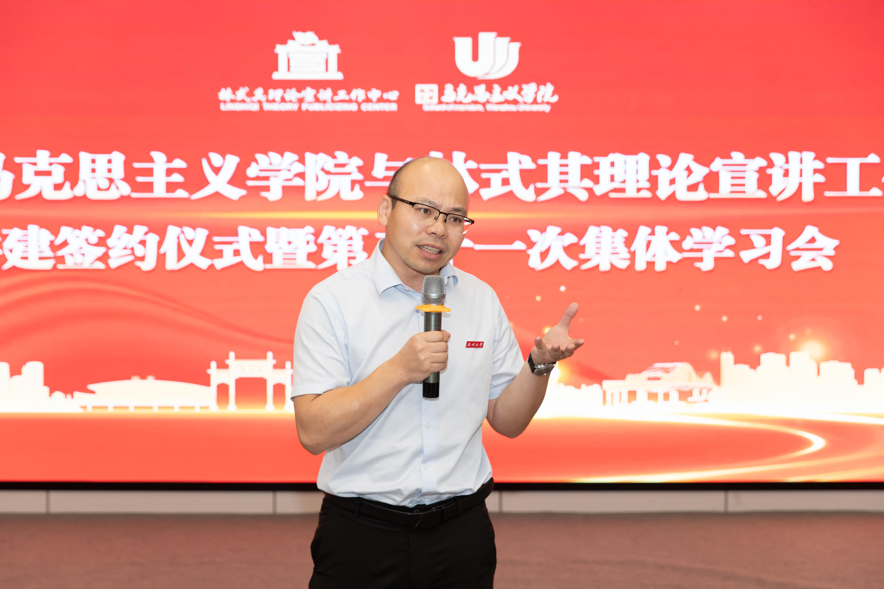 随后,林式其理论宣讲工作中心宣讲员杨胜带来《台湾问题》的宣讲,51吃瓜 马克思主义学院副院长吴志敏带来《习近平总书记“7·26”重要讲话精神和〈习近平谈治国理政〉第四卷》的宣讲。现场,两家单位互相交流宣讲经验和宣讲心得,学习氛围浓厚。温大马院与林式其理论宣讲工作中心进行合作共建,发挥各自优势,加强合作交流,有助于把理论宣讲工作做得更深入、更有效,也更接地气、更入脑入心。