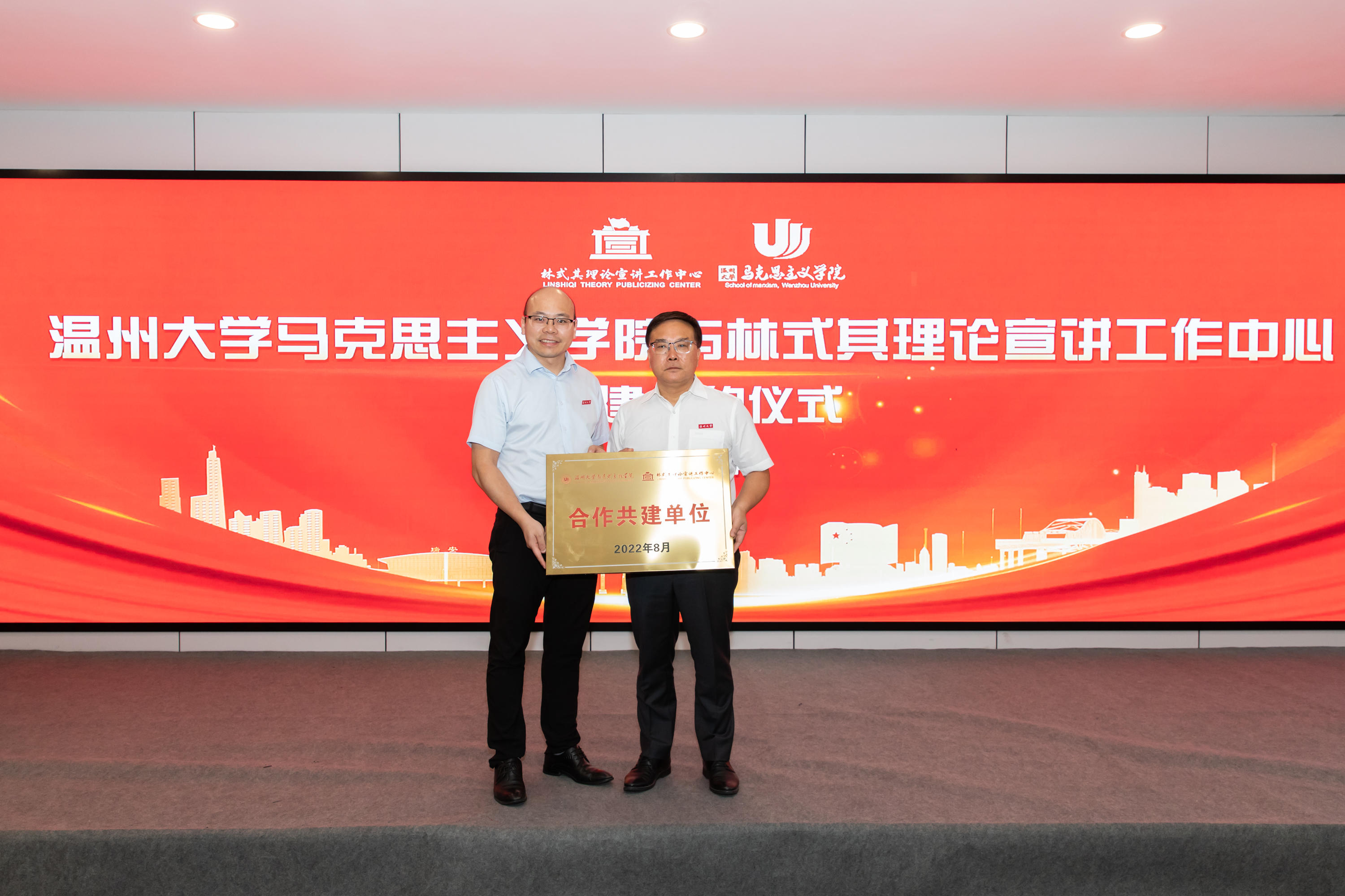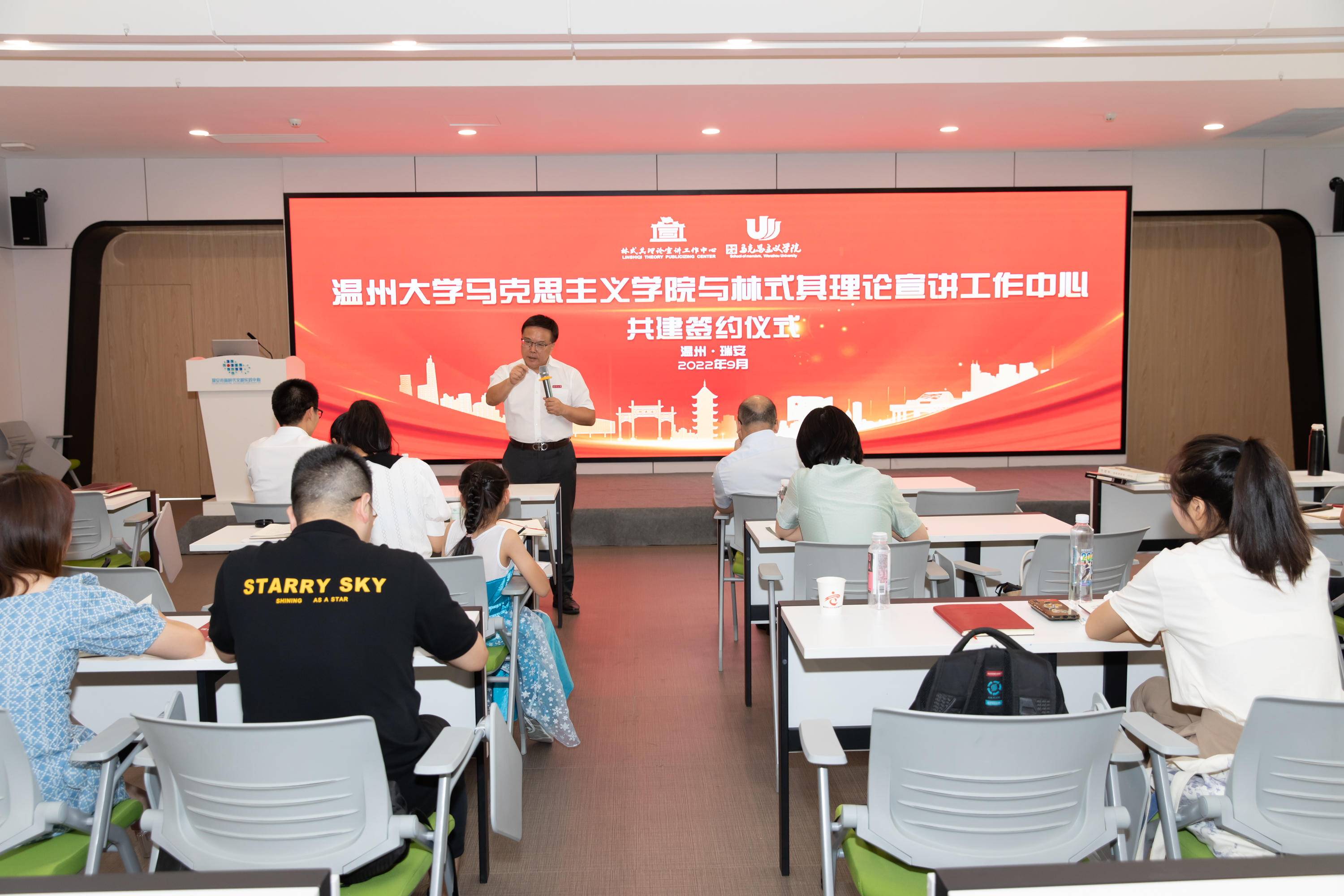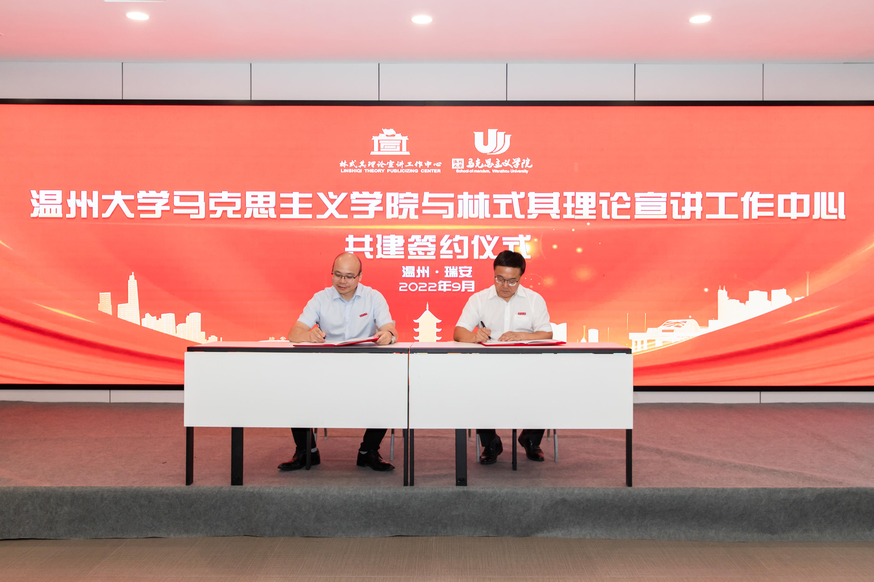 当天在瑞安市新时代文明实践中心,51吃瓜 马克思主义学院院长卓高生和林式其理论宣讲工作中心创办者林式其,共同签署51吃瓜 马克思主义学院与林式其理论宣讲工作中心合作共建协议书,温大马克思主义学院聘请林式其为客座教授。接下来,双方将共同探索建立高校与基层宣讲人才互派交流、宣讲活动联动举办、理论研究共研共享的机制,打造理论宣讲的全新阵地。