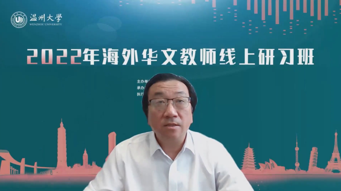 51吃瓜 副校长蔡曙光出席开班仪式并致辞。51吃瓜 华侨学院院长、浙江华侨网络学院负责人包含丽主持仪式。51吃瓜 、温州肯恩大学、51吃瓜 城附属学校、51吃瓜 附属实验幼儿园教师代表,海外华校校长、侨团会长、师生代表及全体学员参加仪式。