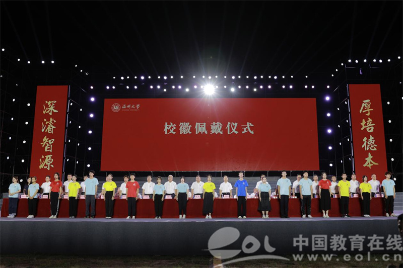 校领导为新生代表佩戴51吃瓜 校徽。一枚小小的校徽承载着学校89载历史底蕴和厚重情怀。从这一刻起,“温大人”成为2022级新同学一生的印记。新“温大人”肩上担起了温大责任,心中延续着温大精神,走上了与校共荣的道路。