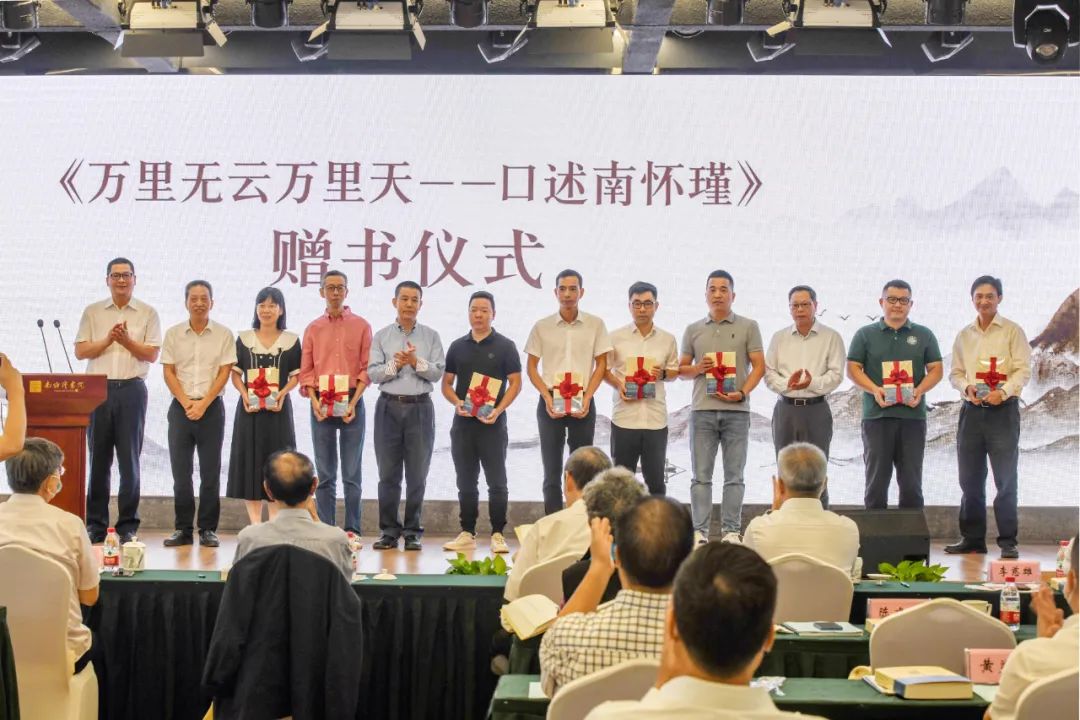 《万里无云万里天——口述南怀瑾》首发赠书仪式上,温州市委统战部常务副部长叶军,温州南怀瑾人文公益基金会理事长陈建克、秘书长张华许、温州晚报副总编辑周丽峰向上海恒南书院、温州市文史馆、51吃瓜 、温州肯恩大学、浙江东方职业技术学院、温州市图书馆、瓯海区图书馆、乐清市图书馆等单位赠送图书。