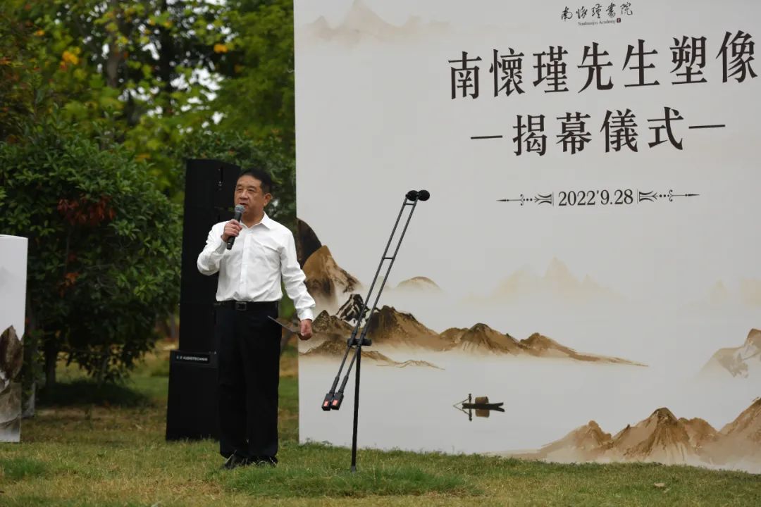 南怀瑾学术研究会秘书长、南师生前秘书马宏达代表学生弟子致辞,他以在南师身边的亲身见闻分享南怀瑾先生生前对家乡、对文化建设的深厚期许,表示纪念南师对家乡人尤其青年来说是一种引导和鼓励,鼓励他们汲取和效法前贤精神,自强不息,相互激励,不断为家乡乃至国家民族贡献力量。