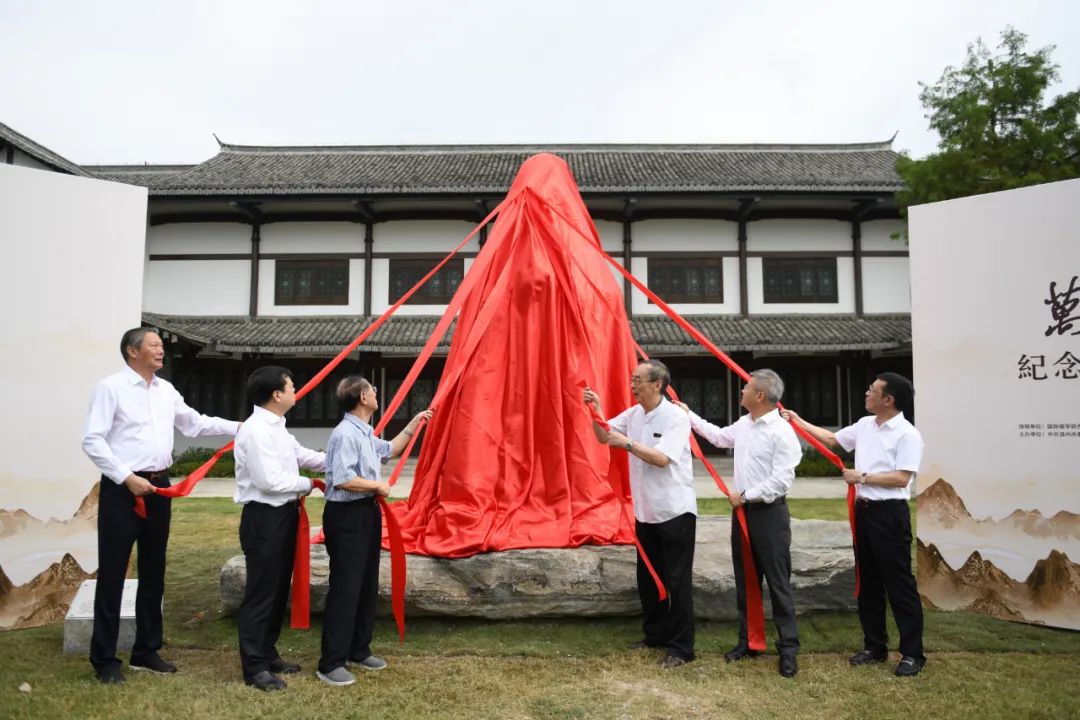 中共中央统战部原副部长、全国工商联原党组书记胡德平,中科院院士、南怀瑾学术研究会会长朱清时,全国政协常委、全国工商联副主席、正泰集团董事长南存辉,中共温州市委常委、统战部长汪驰,温州市政协原主席余梅生,温州市政协副主席徐有平为塑像揭幕。