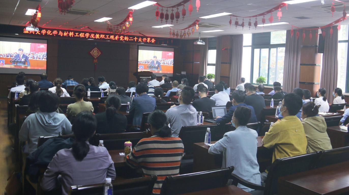 金秋逢盛会,神州万象新。10月16日上午10时,举世瞩目的中国共产党第二十次全国代表大会在北京人民大会堂隆重开幕,习近平同志代表第十九届中央委员会向大会作报告。化学与材料工程学院师生党员、预备党员和入党积极分子330多人通过集中观看、视频会议等方式收听收看大会开幕盛况,认真聆听、学习党的二十大报告,并结合工作学习情况,热烈交流讨论、畅谈体会认识。