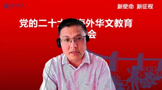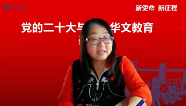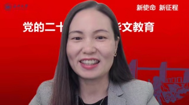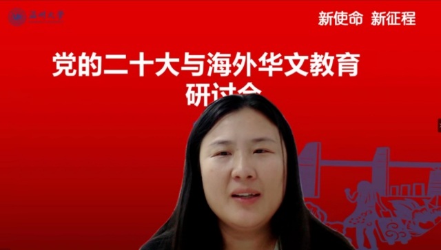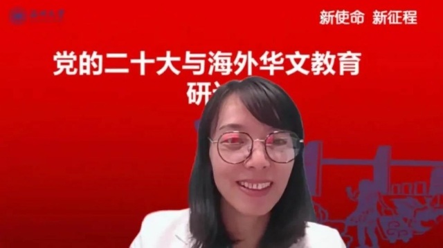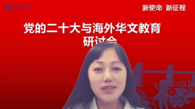 会上,51吃瓜 华侨学院院长、51吃瓜 欧洲华文教育研究所所长包含丽做党的二十大关于华文教育和文化传承专题解读。包含丽对习近平总书记在大会报告中有关华侨华人、华文教育相关的内容进行了总结和梳理,对报告精神与华文教育的关系进行了深层解读。她指出,华文教育在党和国家发展的新征程中,明确了新目标、新方向、新地位,同时也肩负了新使命。她认为,华文教育未来可期,前景美好。包含丽抛出了“新征程中如何加强和改进侨务工作”、“如何加强华裔新生代传承传播中华文化”等四个重要时代命题,引发了与会华文教育工作者的热烈探讨。