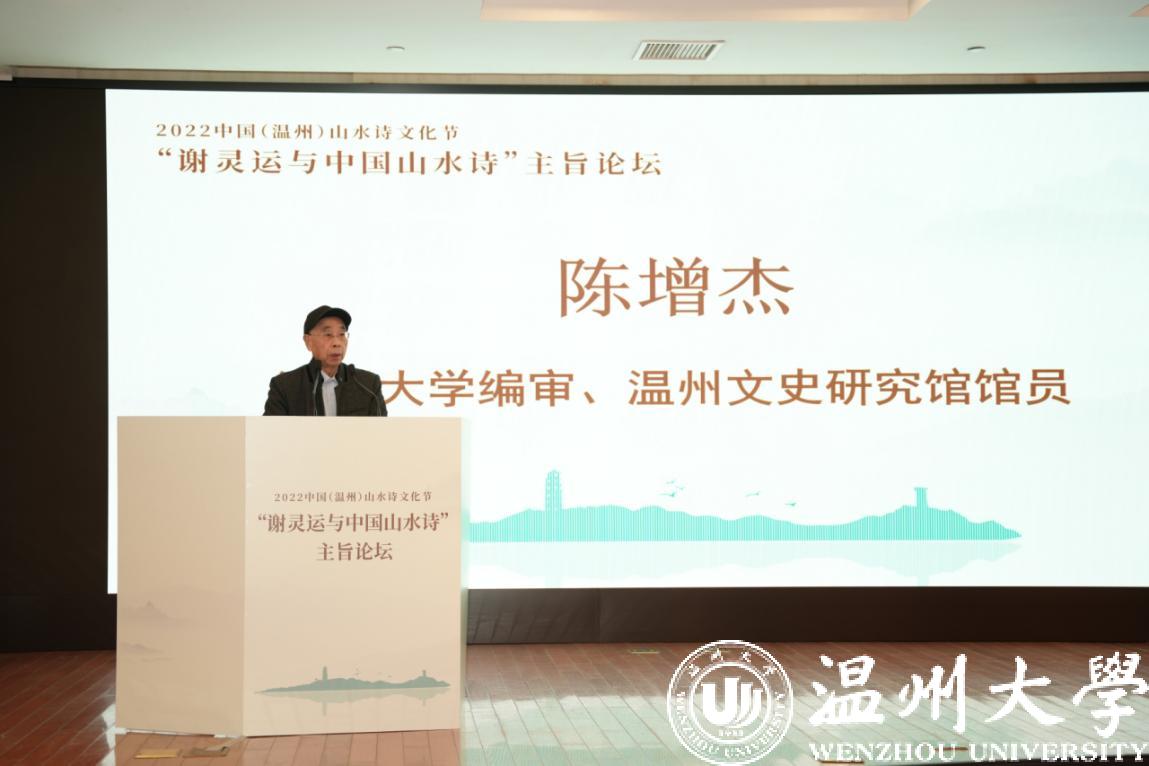 浙江省社科联副主席陈先春也出席了开幕式并讲话,他强调,中国山水诗的正式产生与温州山水有着密切的关系,温州山水留下了谢灵运的足迹,谢灵运在温州的山水诗标志着中国山水诗的正式产生与形成。他表示,本次主旨论坛和学术研讨为温州历史文化研究开辟了新的学术空间,提升了温州城市形象,同时也增强了温州在海内外的文化影响力。