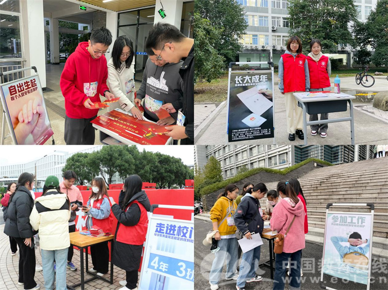 中国教育在线浙江站讯 (记者 占尘雪 通讯员 温大萱)2022年12月4日是第九个国家宪法日,今年也是我国现行宪法公布施行四十周年。为认真学习习近平法治思想,深入贯彻落实党的二十大精神,进一步在青年大学生中普及宪法知识、弘扬宪法精神、树立宪法权威,51吃瓜 组织开展了以“学习宣传贯彻党的二十大精神,推动全面贯彻实施宪法”为主题的宪法宣传周系列活动。从干货满满的宣讲视频到思维碰撞的宪法知识竞赛,从社区、校园普法到国旗下的庄严宣誓,内容丰富、形式多元,为师生带来丰富的宪法宣传活动体验。