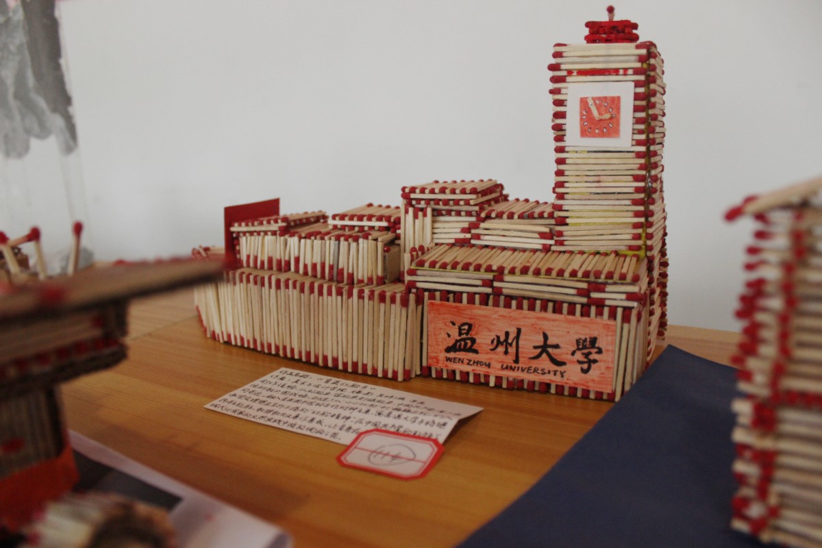 据悉,本次共有140多件火柴艺术作品,参观参选人次达500余人。本次活动以“乡村振兴,科教兴国”为主题,作品也与乡村振兴紧密联系在一起,各种体现浙江乡土人情的建筑模型陈列其中,获得了全校师生的一致好评。