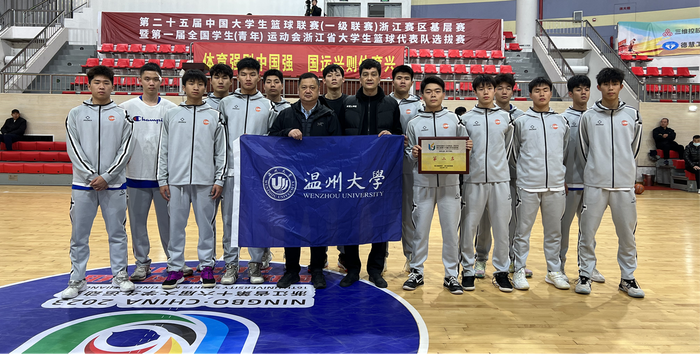 11月28日,本届省大运会篮球(丙组)比赛在台州市三门县体育馆开幕。参赛队伍来自各地区优秀的高校强队。温大男篮队的参赛队员由1名大四队员、1名大三队员、5名大二队员和5名大一队员组成,在其他球队都是以大三大四学生为主、打球经验比较成熟的情况下,一路过关斩将,最终取得佳绩。