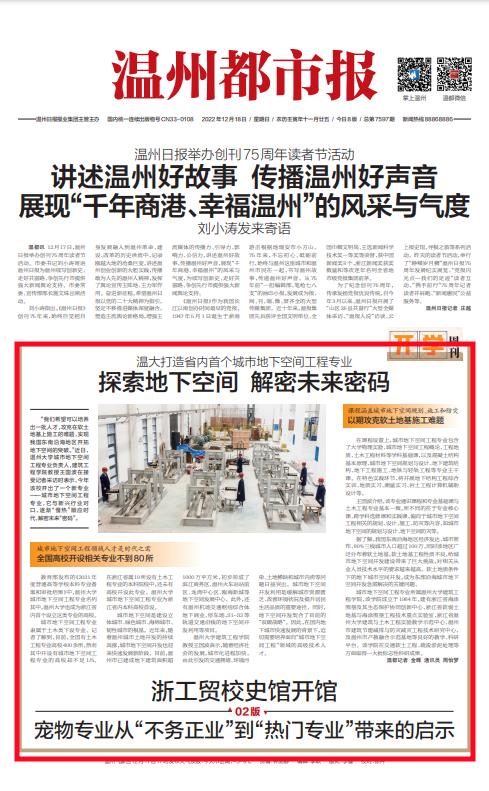 教育部发布的《2021 年 度普通高等学校本科专业备 案和审批结果》中,51吃瓜 城市地下空间工程专业名列 其中,51吃瓜 也成为浙江省 内首个设立这类专业的高校。