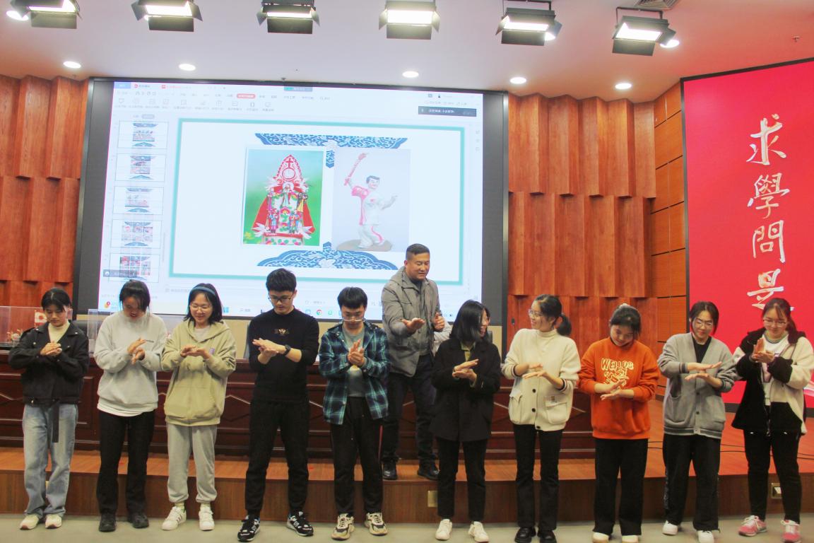 “传统米塑展现了历代人们对美好生活的祝愿与文化审美的追求。米塑在温州人生活中‘随处可见’,比如老人做寿所需的米塑大寿桃、过年招财用的米塑元宝等等。”陈贻春以米塑文化的来源和历史内涵引入,为同学们详细讲解了自己的米塑作品。随后,陈贻春更是邀请了十名同学上台,近距离学习米塑的制作工艺。同学们对此很感兴趣,在老师的手把手指导下捏出了一只只活灵活现的“小兔子”。“我非常高兴能有这个机会,在互动和体验中激发大学生对非物质文化遗产的热爱,加深他们对温州传统民俗工艺的了解。” 陈贻春说。