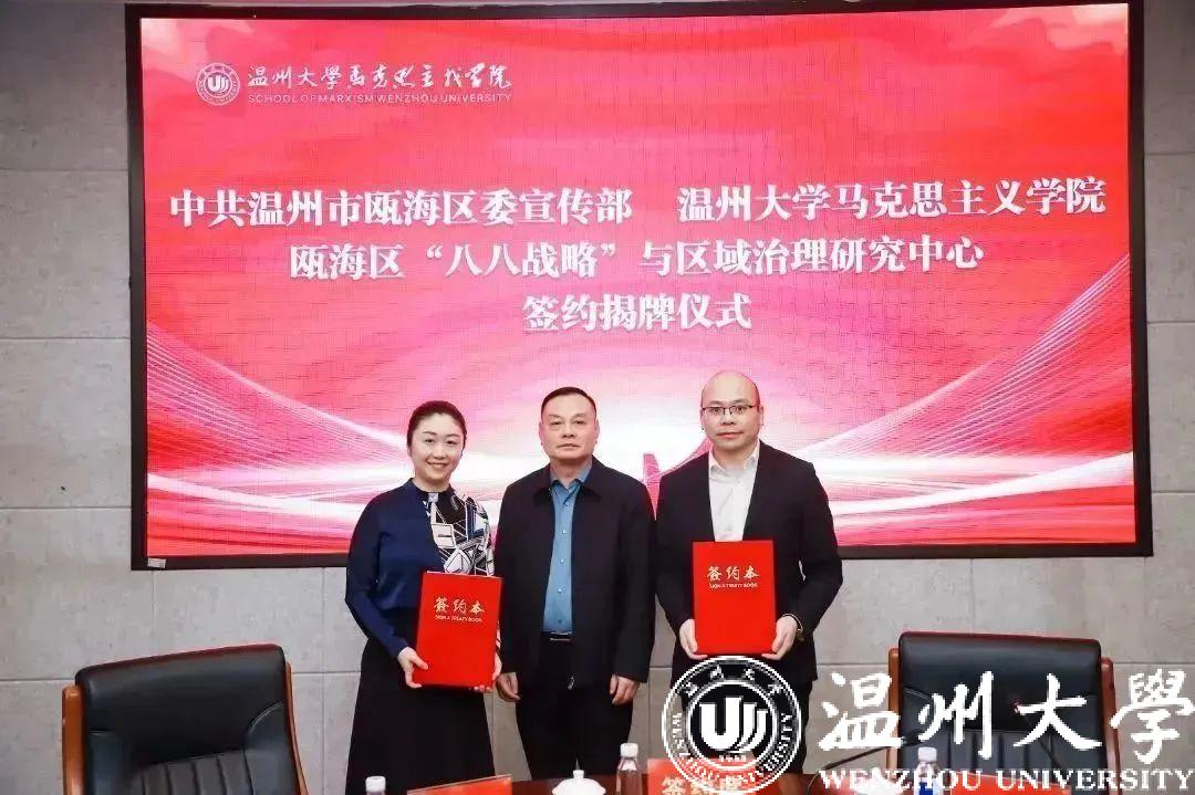 双方举行了合作共建签约仪式和中心揭牌仪式,并为瓯海区“八八战略”与区域治理研究中心博士宣讲团颁发聘书。