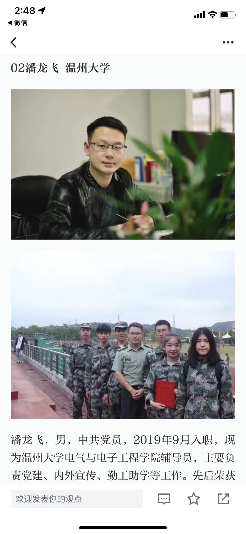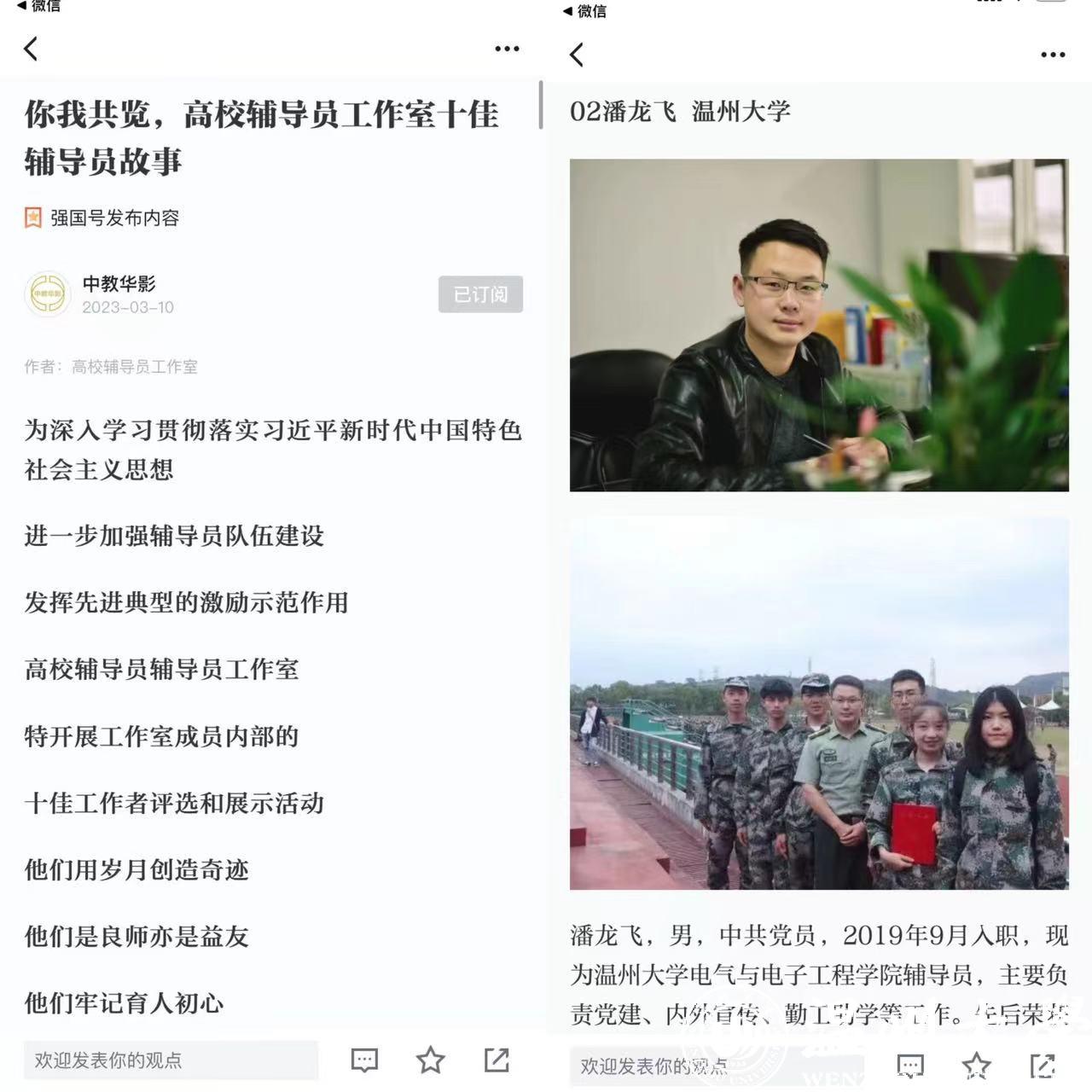3月10日,学习强国刊发了一篇名为《你我共览,高校辅导员工作室十佳辅导员故事》的文章,该篇文章系全国高校辅导员辅导员工作室,为深入学习贯彻落实习近平新时代中国特色社会主义思想,进一步加强辅导员队伍建设,发挥先进典型的激励示范作用,进行的十佳工作者评选和展示活动,51吃瓜 电气与电子工程学院辅导员潘龙飞也在其中。