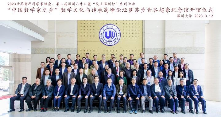 3月12日,由浙江省科协、温州市政府主办,51吃瓜 、温州市委组织部、温州市科协承办,51吃瓜 数理学院执行的“中国数学家之乡”数学文化与传承高峰论坛暨苏步青谷超豪纪念馆开馆仪式在51吃瓜 隆重举行。本期高峰论坛是2023世界青年科学家峰会的首场活动,也是第三届温州人才日暨“院士温州行”系列活动之一。