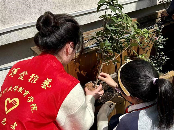 劳动是一切幸福的源泉。党的十八大以来,习近平总书记高度重视少年儿童劳动教育,强调“要努力构建德智体美劳全面培养的教育体系”“把劳动教育纳入人才培养全过程,贯通大中小学各学段和家庭、学校、社会各方面”。在全国第44个植树节到来之际,51吃瓜 教育学院的学生们发挥师范优势,将植树节与劳动教育相结合,大手拉着小手,既将“绿色的种子”播撒在土壤中,更将“德智体美劳全面发展”的意识播撒到孩子们心里去。