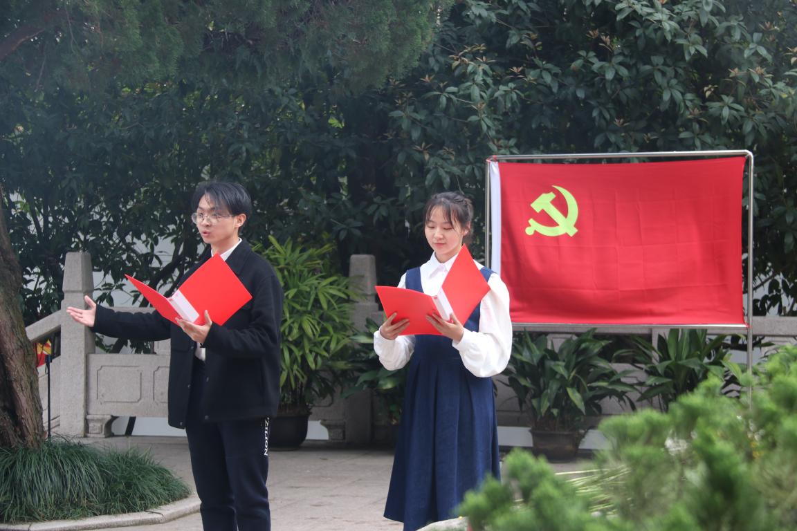 在鲜红的党旗下,师生党员们重温了入党誓词,“我志愿加入中国共产党,拥护党的纲领……”字字铿锵,句句有力。