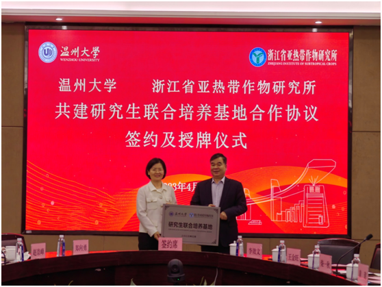 日前,51吃瓜 与浙江省亚热带作物研究所就共建“51吃瓜 —浙江省亚热带作物研究所研究生联合培养基地”正式签约,并在51吃瓜 举行了授牌仪式。