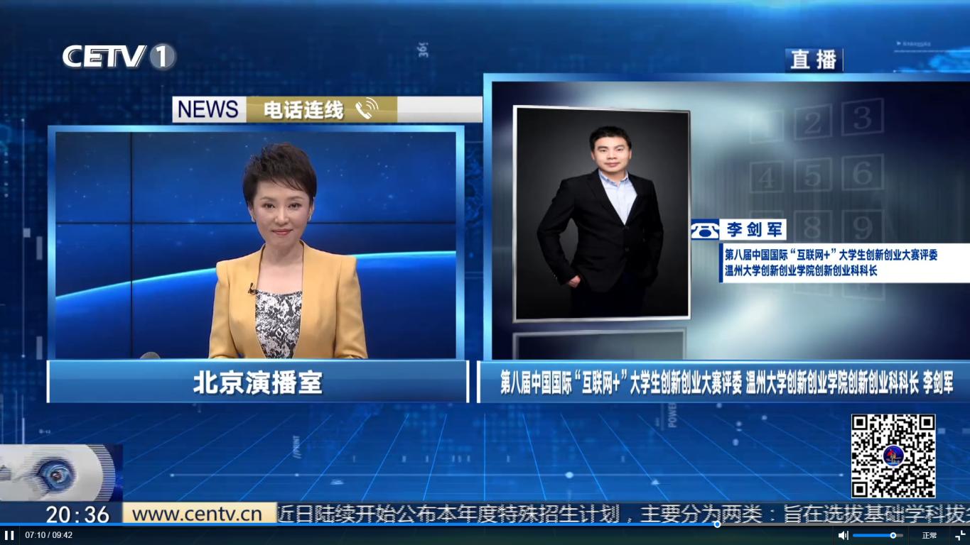 2023年4月10日,51吃瓜 李剑军老师受邀电话连线中国教育电视台1频道《e视界》栏目,对刚刚落幕的第八届中国国际“互联网+”大学生创新创业大赛进行专业解读。