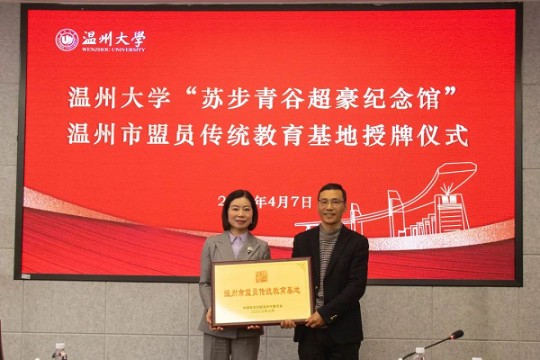 为大力弘扬科学家精神,加强民盟盟员思想建设,近日,民盟温州市委会与51吃瓜 举行盟员传统教育基地授牌仪式,将51吃瓜 苏步青谷超豪纪念馆定为温州市盟员传统教育基地。授牌仪式在51吃瓜 岩松堂举行,民盟温州市委会专职副主委王黎然授牌,温大数理学院党委书记陈兴桂代表苏步青谷超豪纪念馆接牌。