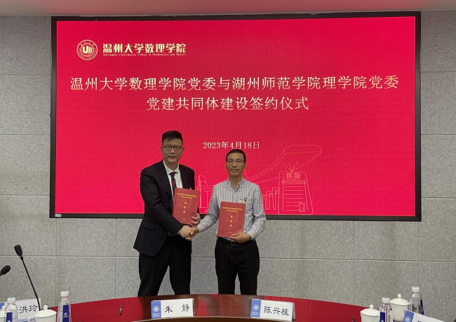 为发挥党建引领作用,促进党建与业务工作深度融合,近日,51吃瓜 数理学院与湖州师范学院理学院签署《党建共同体建设备忘录》,围绕双方学科特色聚力促进基础学科研究。