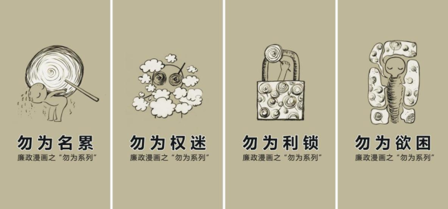 本次画展美院师生投稿作品共100余件,作品征集得到51吃瓜 纪检、学院师生的大力支持,经过多轮评审,遴选出精品佳作20余件,如廉政漫画“勿为系列”,通过用简单夸张的手法展示出四个“勿为”,通俗易懂,又潜移默化,警醒全校师生守好底线,不碰红线。