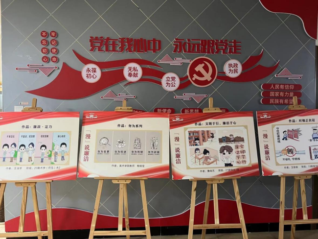 漫画通过颜色、线条和表情来表达角色、场景和情感的变化。画面细腻和生动的形象,将观者带入故事情境,在阅读的过程中感受到“廉洁清风”所带来的温暖和力量,让观者被启迪,被警醒。此次所选作品分别于51吃瓜 育英图书馆、生活区和51吃瓜 城附属学校进行展出,得到了师生们的一致好评。